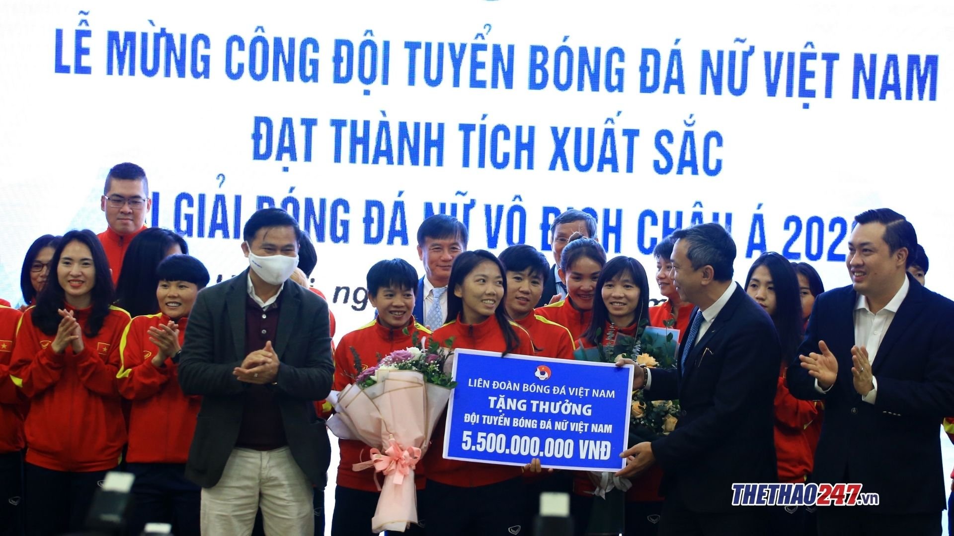 Sáng 11/2, Liên đoàn bóng đá Việt Nam tổ chức Lễ mừng công đội tuyển bóng đá nữ Quốc gia Việt Nam tại trụ sở VFF. Cũng trong buổi lễ, đã có rất nhiều các phần thưởng giá trị được trao tặng cho thầy trò HLV Mai Đức Chung. Cụ thể,: